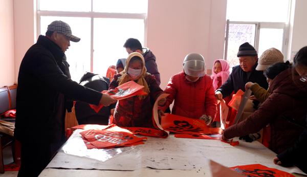 “春回大地风光好,福满人间喜事多。”活动现场,长桌排开,红纸铺开,书法家及爱好者们挥毫泼墨,笔走龙蛇。一行行俊逸的书法,一句句真诚的祝福,吸引了不少村民驻足欣赏、排队领取,呈现出一派新春佳节欢乐祥和的气氛。