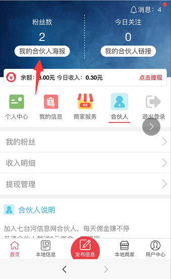 点击我的合伙人海报,把海报保存到手机,分享到朋友圈或好友
